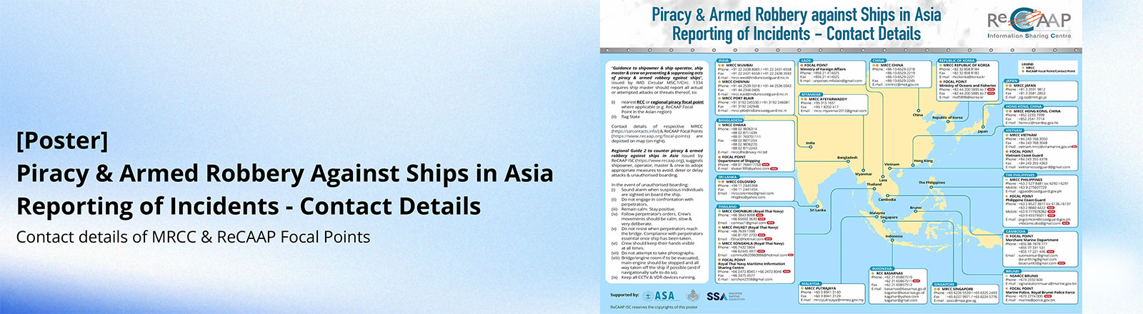 ReCAAP ISC's periodic reports help the maritime community combat piracy and sea robbery in Asia by by sharing detailed information of the incidents such as locations, modus operandi and good practices, in order to raise awareness on the risks and strengthen safety measures.